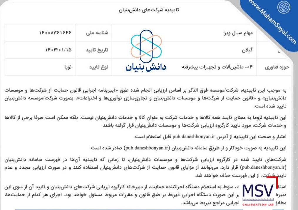 به گزارش روابط عمومی شرکت فنی و مهندسی مهام سیال ویرا؛ در راستای تحقق یکی از اهداف تبیین شده هیات مدیره مهام سیال ویرا، با سرمایهگذاری و پیگیریهای مستمر این شرکت موفق به اخذ مجوز دانشبنیان از کارگروه ارزیابی شرکت ها و موسسات دانشبنیان شد.